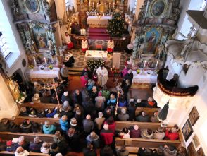 An Heilig Abend wurde ein festlicher Gottesdienst in der Filial- und Wallfahrtskirche Mariä Heimsuchung Kirchwald, Pfarrei Nussdorf am Inn gefeiert. An der Orgel saß Rudolf Hitzler und instrumental wurde die Messe von den Weisenbläsern aus Nussdorf begleitet. Die Messe wurde vom Nussdorfer Pfarrer Rudolph zelebriert. Pfarrer Rudolph bedankte sich für den zahlreichen Besuch und den Gestaltern des Gottesdienstes. Ein besonderer Dank galt Bruder Clemens vom Benediktinerorden in Schweiklberg bei Vilshofen für seine Arbeit und gab bekannt, das er nächstes Jahr die Einsiedelei verlässt, da er vom Orden zurückgerufen wurde, da sie ihn dringend brauchen.