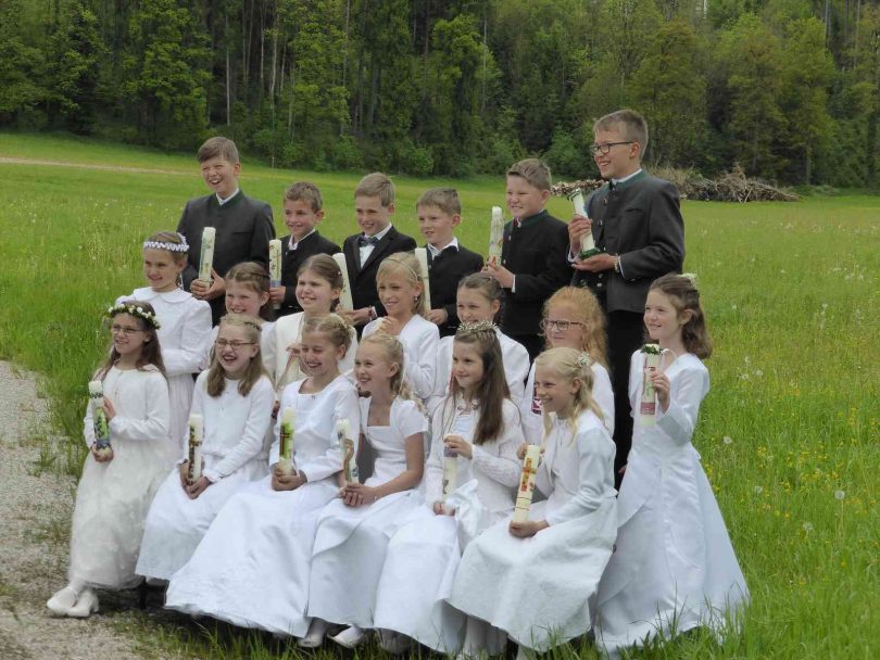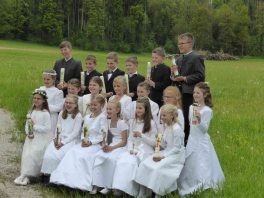 Sechs Buam und 13 Dirndl empfingen bei einem feierlichen Gottesdienst in der Pfarrkirche “Christkönig” erstmals die Heilige Kommunion. Bei diesem Gottesdienst dankte Pfarrer Klaus Hofstetter den vielen Kräften für die Vorbereitungen, insbesondere Gemeindereferentin Ursula Stacheder, Religionslehrerin Katrin Boderke und den Firmlings-Eltern.