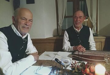 “…Es sturmt und es schneibt, es wedat, es treibt …”, heißt es an einer Textstelle und so war es auch rund ums heimatMuseum, während der Priener Verserlschreiber Ernst Reiter in eindrucksvoller Weise die Mundarttexte der Heiligen Nacht vortrug. Peter Maier aus Kolbermoor spielte zwischendurch virtuos auf seiner Zither besinnliche alpenländische Weisen, teils auch untermalend zu Textpassagen.