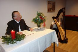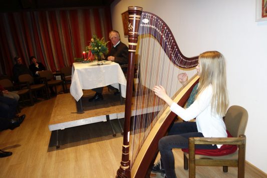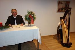Stilsicher und authentisch las Sepp Haslberger im Pfarrsaal von Reit im Winkl die einzigartige Weihnachtserzählung „Die Heilige Nacht“ von Ludwig Thoma. Dieser große bayerische Dichter habe kurz vor seinem Tod im Lukasevangelium gelesen und die Weihnachtsgeschichte ins Bayerische übertragen, sagte Haslberger. Als Bühne für seine Erzählung wählte Ludwig Thoma das winterliche Bayern, in dem Maria und Josef durch verschneite Wälder sowie malerische und raue Winterlandschaften ihren mühsamen Weg gehen bis hin zur Herbergsuche in Bethlehem, das seiner Beschreibung nach einem oberbayerischen Dorf entspricht. Passend umrahmt wurde die Erzählung zwischendurch immer wieder mit wunderschönen Harfenklängen von Maria Pertl aus Bernau.