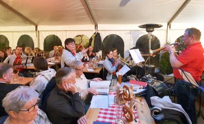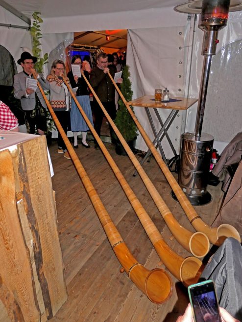 Angeblasen wurde der Heimatabend vom das Alphorn-Quartett des Vereins der Bayern in Berlin. Zusammen mit den “O’Treibern“ und dem Duo „Moni & Felix“, vom Verein, sowie mit Tanz und Musikeinlagen der Gäste kam in unserer Almhütte eine bombige Bierzeltstimmung auf. Auch wenn es sehr eng war, die Musiker und Trachtler haben jede kleine Freifläche genutzt, um für Stimmung zu sorgen. Gleichzeitig in der Almhütte und den beiden Nebenzelten Blasmusik und Trachtentänze vom Feinsten, das gab es in unserem Vereinsheim noch nie.