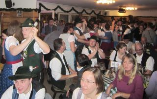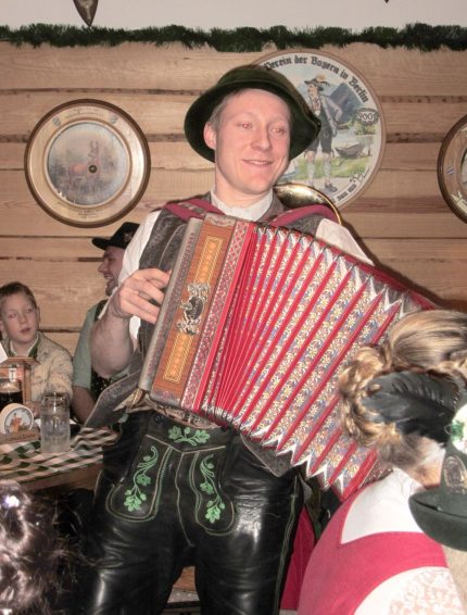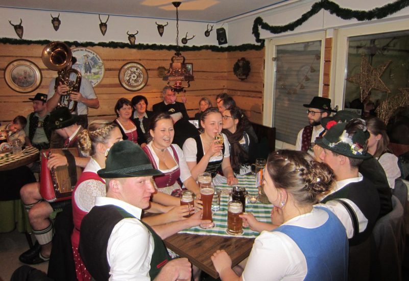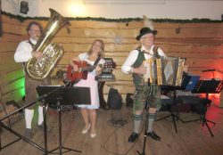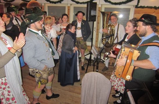 Weiterhin war auch das Blasorchester der Kreismusikschule Erding mit einer Besuchergruppe zu Gast in der Almhütte. Da wegen der Anzahl der Gäste die Almhütte aus allen Nähten platzte, hatten diese leider einen etwas ungünstigen Platz in unserer Almhütte erwischt, wo es mit der Heizung nicht so gut geklappt hat. Der Kälteeinbruch der letzten Tage kam für unseren Hüttenwirt zu überraschend. Der Verein der Bayern in Berlin entschuldigt sich hierfür recht herzlich bei den Erdingern. Zusammen mit den “O’Treibern“ und dem Duo „Moni & Felix“, vom Verein der Bayern in Berlin, kam in unserer Almhütte eine richtige Bierzeltstimmung auf.