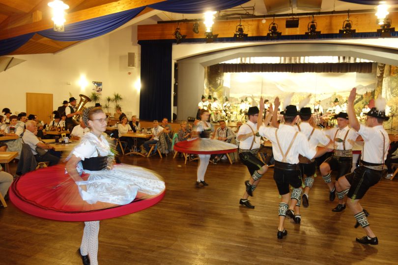 Und dass so viele Besucher im Festsaal waren, lag auch daran, dass die Aktiven der „Falkastoaner“ aus Inzell und der „Miesenbacher“ aus Ruhpolding von jeweils zahlreichen Vereinsmitgliedern begleitet wurden. Dass es viele Gemeinsamkeiten bei den Darbietungen aus den zwei verschiedenen Gauverbänden Chiemgau-Alpenverband (Reit im Winkl) und Gauverband I (Inzell und Ruhpolding) gibt, sah man gleich nach dem Bieranstich durch Bürgermeister Matthias Schlechter beim gemeinsam spritzig geplattelten „Langschottisch“.