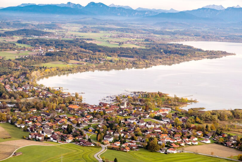 Bericht: Bayerisches Finanz- und Heimatministerium – Foto: Rainer Nitzsche (Luftaufnahme mit Seebruck und Chiemsee)
