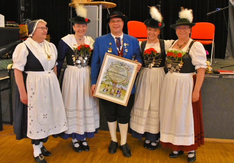 Im Rahmen des 50-jährigen Jubiläums der Trachtenjugend am 15. Mai 2022 kam dem Gaujugendleiter des Trachtengaus München und Umgebung eine ganz besondere Ehrung zuteil. Sichtlich überrascht nahm Markus Hochlahner aus der Hand des Landesjugendvertreters Armin Schmid die Ehrenadel in Gold sowie eine Urkunde für seine besonderen Verdienste in der Jugendarbeit entgegen.