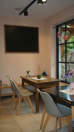 Dazu kommen täglich wechselnde Mittagsgerichte, die mitgenommen oder vor Ort in den gemütlichen Räumlichkeiten oder auf der Terrasse gegessen werden können. Gerade jetzt, wenn es im Sommer heiß ist, gibt es beispielsweise Wurstsalat, sommerliche Salatschalen oder herzhafte Essigknödel. Andere schätzen auch die hausgemachten Suppen und Naschkatzen die Kuchen und Torten von regionalen Bäckereien. Eine reichhaltige Frühstückskarte soll bald folgen.