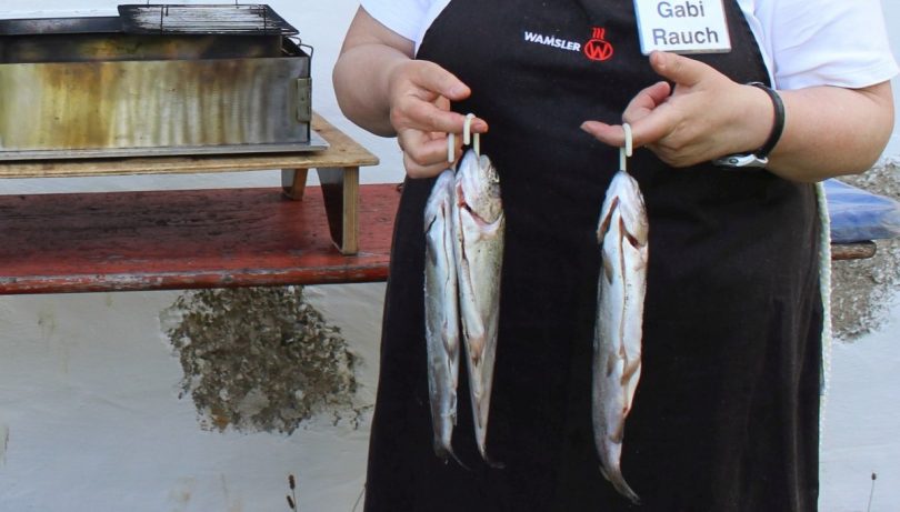 Ihr Name ist Programm: Gabi Rauch räuchert für ihr Leben gerne und sie ist eine wahre Expertin! Davon konnten sich zehn Frauen und Männer beim Workshop „Heißräuchern – traditionelles Konservieren“ im Bauernhausmuseum Amerang des Bezirks Oberbayern überzeugen. Selbst Hobby-Angler mit guten Grundkenntnissen im Räuchern ihrer Forellen hatten zahlreiche Aha-Erlebnisse. Das erste gab es gleich zu Beginn: „Wir räuchern nicht nur Fisch und Fleisch, sondern auch Obst, Gemüse, Tofu und Nüsse“, erklärte Gabi Rauch. Ihre wichtigste Botschaft: „Früher war es eine schiere Notwendigkeit, Lebensmittel mit Rauch zu konservieren. Heute haben wir die Möglichkeit, mit verschiedenen Techniken und Geschmäckern zu experimentieren.“