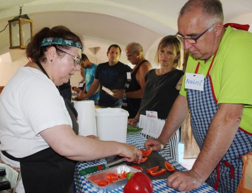 Das zweite Aha-Erlebnis: Wer heiß räuchern will, braucht keine teure Ausrüstung. Ein alter Topf von der Oma, der nicht mehr gebraucht wird, reicht aus, ebenso ein Wok oder Römertopf. Wichtig: Vorab müssen Fisch und Fleisch entwässert werden. Das geht mit dem Einlegen in Salzlake, aber auch mit dem einfachen Einsalzen. In einer Lake muss der Fisch mindestens 12 Stunden ruhen – beim Einsalzen dauert es nur drei Stunden. Vor dem Genuss hieß es erst einmal Gemüse schnipseln! Zwiebeln, Zucchini, Champignons, geschälte Paprika, Pflaumen, Bananen, Knoblauch und selbst eingelegter Tofu kamen unters Messer. Andrea und Thomas waren mit viel Spaß dabei. Die beiden Münchner verarbeiteten daheim bisher nur Fisch. „Ich hab mir das Räuchern selbst beigebracht“, erzählte Hobby-Angler Thomas. „Aber jetzt wollte ich mal Neues von einer Expertin lernen. Ich bin wirklich überrascht. Dass man mit wenig Aufwand Gemüse räuchern kann, und sogar Obst, habe ich nicht gewusst.“ Die nächste Überraschung folgte auf dem Fuß. „Bisher habe ich nur mit Erlen- und Buchenholz gearbeitet. Es hieß immer, andere Hölzer wie Birke hätten zu viel Harz.“ Doch keineswegs – es eignen sich viele Holzsorten, erklärte Gabi Rauch. „Egal ob Ahorn, Akazie, Birke, Erle, Esche, Pappel, Robinie oder Weiden – das ist reine Geschmackssache. Wichtig ist, dass das Holz gut abgelagert, trocken und harzfrei ist. Es darf auch keine Farb- oder Lackreste enthalten.“