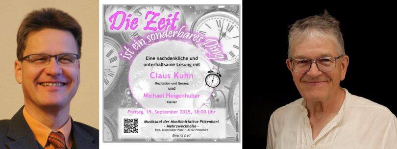 Am 19.09.2025 wird er unter der Überschrift „Die Zeit ist ein sonderbares Ding“ Geschichten erzählen, Gedichte rezitieren und Lieder singen, die er selbst oder „sein“ Pianist vertont haben. Den Flügel spielt Michael Heigenhuber aus Seefeld am Ammersee, auch Kirchenmusiker und während vieler Jahrzehnte stellvertretender Leiter des Amts für Kirchenmusik in München, wo er vor allem für die Vorsängerbücher und für die Neue Musik in der Kirche zuständig war.