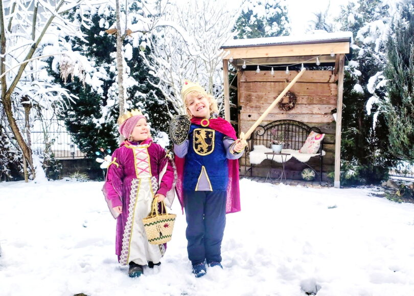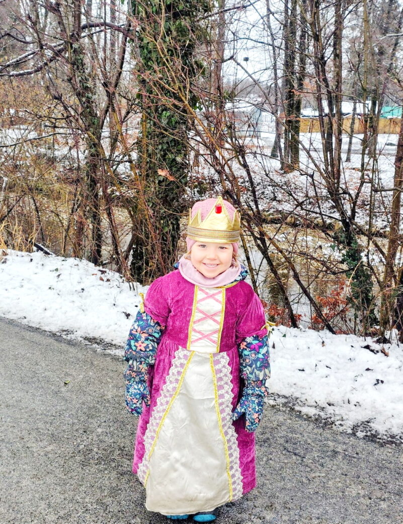 Ihre Freude an jedem Tag des Kostümierens haben allerorten auch schon die Kinder. Wie diese aktuelle Aufnahme von „König Ludwig“ und „Prinzessin Eva“ in der Marktgemeinde Prien zeigt, lassen sich die Narren der Zukunft auch nicht vom frischen Schnee abhalten, um sich mit Zepter und Tasche auf den Weg zu machen.
