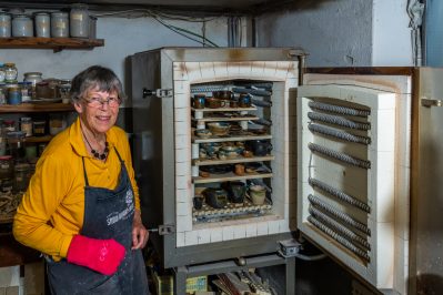 Fotos: Rainer Nitzsche – Helga Bauer kurz vor ihrem 80. Geburtstag in ihrer Keramik-Werkstatt