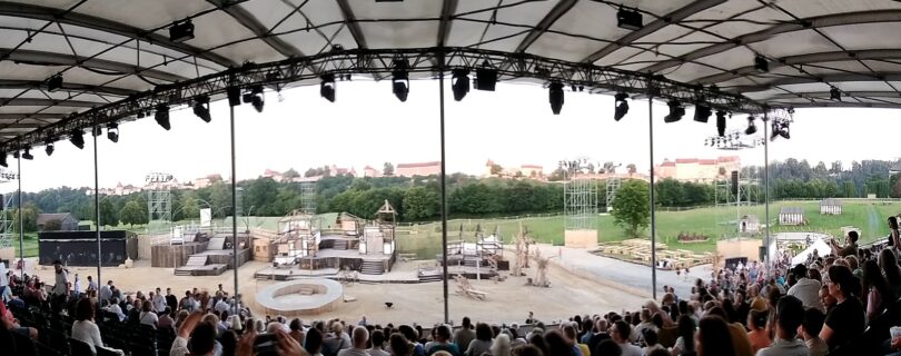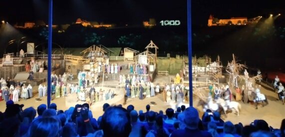 Abschließend sei ein großes Kompliment an die Organisatoren ausgesprochen: Die 1.400 Besucher werden mit Shuttlebussen gratis vom Messegelände zum Spielort und wieder zurückgebracht. Freiwillige Helfer lenken die Publikums-Ströme, damit alles ohne Gedränge fließt. Dass sämtliche Vorstellungen (bis einschließlich 24.8.) ausverkauft sind, ist ein Zeichen für den enormen Zuspruch, den dieses Traditionsspiel regional und überregional genießt.