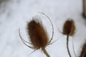 Anforderung im Blühpakt Bayern – Bereiche der Blühflächen müssen in der kalten Jahreszeit als Winterquartiere und Fortpflanzungsstätten für Insekten ungemäht stehen bleiben.