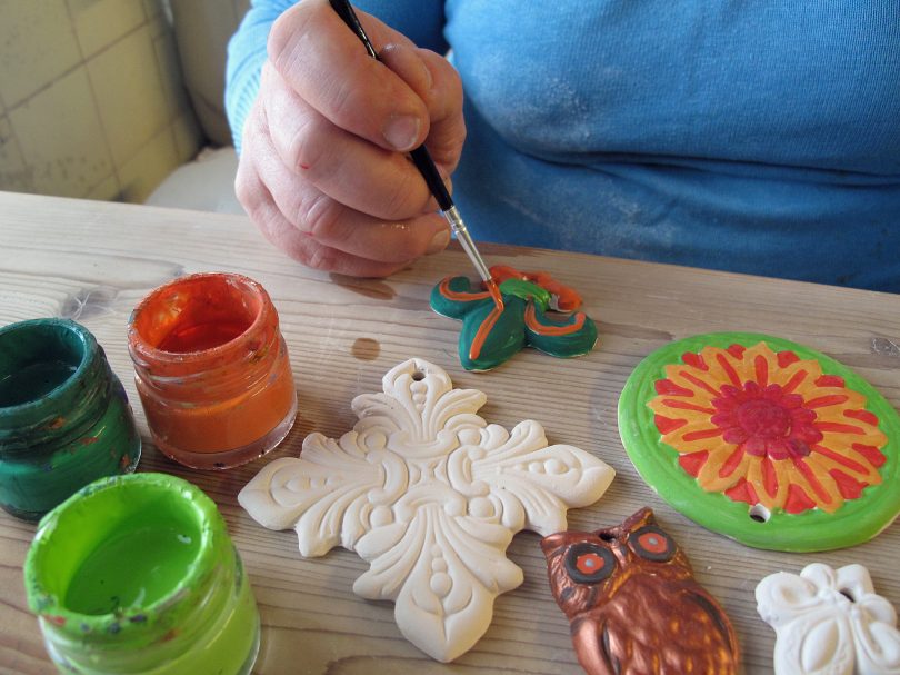 Unterschiedliche Kreativprogramme bietet die Glentleitner Hafnerei in den Herbstferien an, z.B. herbstliche Anhänger aus Ton bemalen.