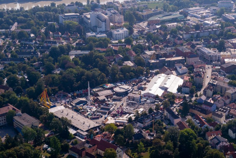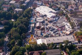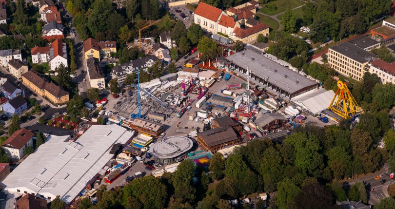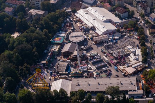 Wie sehr es auf der Loretowiese derzeit zugeht, damit die Aufbauarbeiten für das Rosenheimer Herbstfest 2018 vorankommen, das kann man am besten aus der Luft sehen – wie unsere aktuellen Aufnahmen zeigen, u.a. sieht man, dass das Riesenrad erst zu einem Viertel aufgebaut ist.
