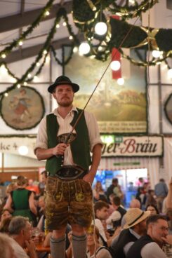 Nicht nur Brauerei-Chefin Marisa Steegmüller, Gau-Ehrenvorstand Walter Weinzierl vom Bayerischen Inngau-Trachtenverband und Dirigent Roland Merk von der Dreder Musi freuten sich, als ihre Idee eines Blasmusik- und Trachtenabends am zweiten Wiesnsonntag beim Rosenheimer Herbstfest erneut umgesetzt wurde. Die Stimmung war ebenso hervorragend wie die Blasmusik, das Bier, die Goaßlschnalzer und die Plattlereinlagen.