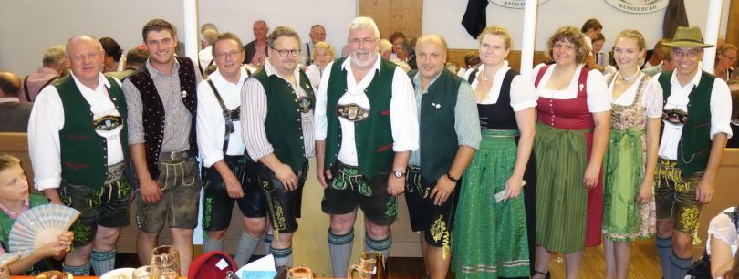 Feuer und Flamme sind die Mitglieder der Feuerwehr Eggstätt nicht nur für das Rosenheimer Herbstfest, sondern auch für den Bayernbund. So war es nicht zufällig, dass beim Feuerwehr-Ausflug in die Auerbräu-Festhalle der Bayernbund-Kreisvorsitzende Christian Glas –ebenfalls aus Eggstätt- auf einen Schlag gleich fünf Neuaufnahmen aus den Feuerwehrreihen erreichen konnte. „Das Herbstfest ist für die Mitgliederwerbung fast wie eine gmahde Wiesn“, so Christian Glas, der auch stellvertretender Landesvorsitzender ist. Unsere Aufnahme zeigt von links: Christian Glas, Neumitglied Sebastian Weber, Sepp Höfer und Norbert Zehrer (stv. Vorsitzende), Sebastian Friesinger (Landesvorsitzender), Eugen Froschmayer und Sonja Obermaier (Neumitglieder), Corina Urger (Neumitglied), Lisa Obermaier (Neumitglied und jüngste FFW-Vorständin im Landkreis Rosenheim) und Landtagsabgeordneter Otto Lederer. Nicht auf dem Bild, aber auch neues Bayernbund-Mitglied ist Josef Kaffl, Kistlerwirt von Bad Feilnbach.