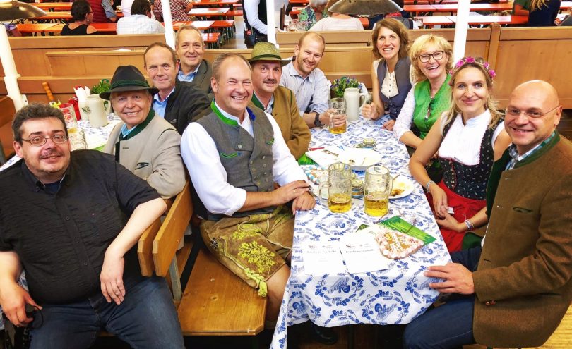 - zweiter Tisch von links: Festwirt Andreas Schmidt, Anton Hötzelsperger (Samerberger Nachrichten), Tobias Böger (Radio Charivari), Sarah Smyka (Marketingleitung VKR), Irmgard Bauer (Echo), Silke Graf (Cityguide Rosenheim), Peter Lutz (Geschäftsführer VKR)