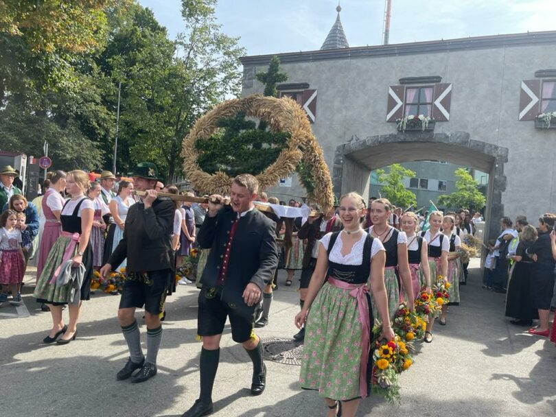 Vor und nach dem Erntedank-Festgottesdienstes im Mangfallpark gab es schön anzuschauende Kirchen- und Festzüge der teilnehmenden Organisationen, der Vereine, aus den Reihen der Landwritschaft, der Jugend, der Musikanten und Trachtler und des Wirtschaftlichen Verbandes, der Gastgeber und Einladender war.