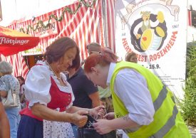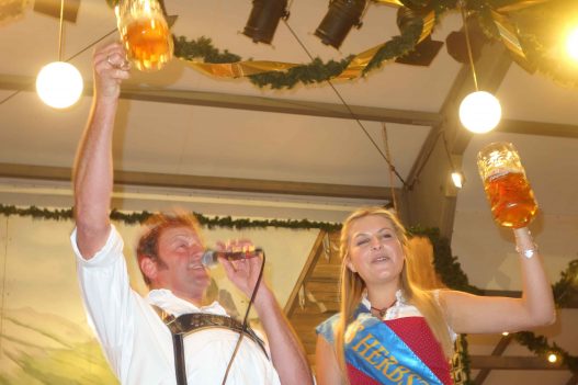 Viele Begegnungen, Kontakte und Gespräche sind derzeit auf höchst angenehme Weise möglich beim Besuch des Rosenheimer Herbstfestes. Die Stunden der Gemütlichkeit erreichen immer dann einen Höhepunkt, wenn die Blaskapellen zu einem Prosit aufspielen – so wie auf diesem Startfoto bei der Dreder Musi mit der Miss Herbstfest. Weitere Bilder zeigen Impressionen vom heurigen Herbstfest.