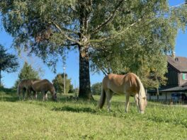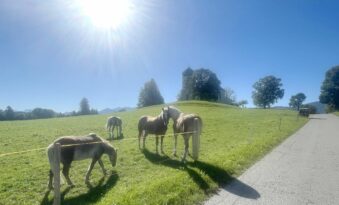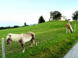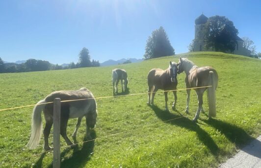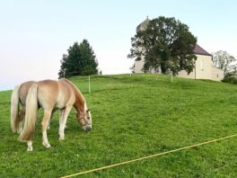 Die Wiesen um die 1934 von Kardinal Faulhaber eingeweihte und auf einem Hügel vom damaligen Wildenwarter Kirchenbauverein errichtete Pfarrkirche “Christkönig” sind ein paradiesisches Weidegebiet für die Pferde aus Prutdorf.