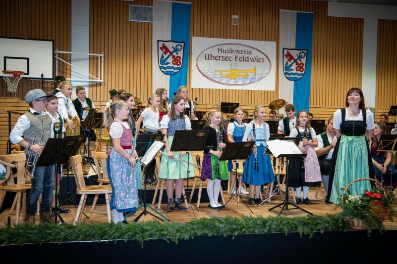 Eine schöne und unterhaltsame Tradition ist das Herbstkonzert des Musikvereins Übersee-Feldwies. Anders wie üblich, wurde dieses Mal jedoch keine Gastkapelle zum Doppelkonzert eingeladen. Am Samstag, den 19. November, präsentierten neben der Blaskapelle zum ersten Mal die vielen Nachwuchsorchester des Musikvereins ihren aktuellen Könnens Stand in der vollbesetzten Turnhalle der Grundschule Übersee. Seit vielen Jahren ist die intensive Nachwuchsarbeit ein Aushängeschild des Musikvereins Übersee-Feldwies. Über die Zeit ist ein breites Spektrum an Nachwuchsorchestern aufgebaut worden. Angefangen bei der Bläserklasse, über das Schülerorchester und die Jugendblaskapelle bis hin zum Erwachsenen-Ensemble, wird jedem Blasmusikinteressierten – von Jung bis Alt – die Möglichkeit geboten gemeinsam zu Musizieren.
