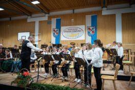 Den Auftakt des Herbstkonzerts gestalteten die beiden Anfängergruppen „Die Uhus“, bestehend aus 15 Nachwuchsmusikanten fortgeschrittenen Alters, und die Bläserklasse, welche aktuell mit 15 Viertklässlern der Grundschule Übersee besetzt ist. Beide Gruppen wechselten sich auf der Bühne mit jeweils zwei Stücken ab. Unter der Leitung von Daniela Küfner zeigten die „U-Hus“, was übrigens ein selbstgewählter Name ist und „unter Hundertjährig“ bedeutet, mit den Stücken „Aus der neuen Welt“ und „Japanische Kirschblüte“ eindrucksvoll was sie können. Auch die Bläserklasse unter der Leitung von Antonio Brazalez bewies mit den beiden Volksliedern „Kuckuck, Kuckuck ruft´s aus dem Wald“ und „Spannenlanger Hansel“ ein beachtliches Talent. Im Anschluss daran kamen das Schülerorchester, das aus Aufsteigern aus der Bläserklasse besteht und die Jugendblaskapelle, welche die Vorstufe zur Blaskapelle ist, auf die Bühne und nahmen nebeneinander Platz. Zunächst brillierte hierbei das 25-köpfige Schülerorchester unter der Leitung von Daniela Küfner mit den beiden modernen und mitreißenden Stücken „Rock-A-Saurus Rex!“ und „Star Wars“ sowie dem bekannten, klassischen Radetzky Marsch von Johann Strauss, der von Victor Lopez bearbeitet wurde. Schließlich präsentierten die jungen Musikanten der Jugendblaskapelle unter der Leitung von Antonio Brazalez mit einer beeindruckenden und konzentrierten Leistung die Konzertwerke „36,5° C – to hot to work“ und „Famous Canon“. Außerdem spielten sie die anspruchsvolle Suite „Fanfare, Canto & Danza“. Beendet wurde der erste Teil des Konzertabends von der Jugendblaskapelle mit der beliebten Ballade „Can´t help falling in love“, welche von Johnnie Vinson arrangiert wurde. Die hervorragende musikalische Leistung, die die Nachwuchsmusikantinnen und -musikanten der vier Ensembles eindrucksvoll gezeigt haben, wurden von den rund 450 Besuchern, mit großem Beifall bedacht. Auch der 1. Vorstand des Musikvereins, Christian Kroner, zeigte sich sehr stolz über die Darbietung des Nachwuchses und dem damit verbundenen Erfolg bei der Nachwuchsförderung im Verein.