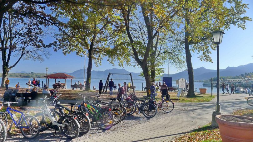 Die jüngsten Oktobertage hatten aufgrund ihrer sonnigen und föhnigen Stimmungen besonders eingeladen, die Freizeit in der freien Natur zu verbringen. So waren natürlich überaus viele Leute zeitgleich an besonders schönen Orten und Plätzen unterwegs – unter anderem in und rund um Prien a. Chiemsee, wie diese Stimmungsbilder von einer Radtour zeigen.