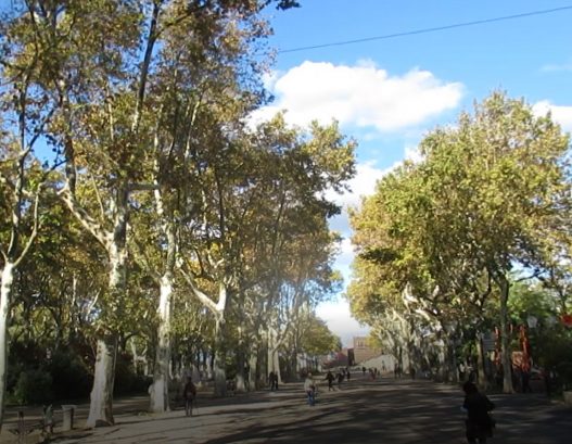 Im Languedoc im Süden Frankreichs ist die Natur dem Chiemgau ein paar Wochen hinterher. Sie ist auch weniger farbenprächtig wie in den Bergen und bei den Farben überwiegt immer noch grün, aber der Herbst ist auch hier nicht ohne Reiz und die Weinfelder, Allleen und von bunten Laubbäumen umringten Plätze haben im herbstlichen Licht schon auch einen besonderen Zauber.