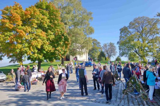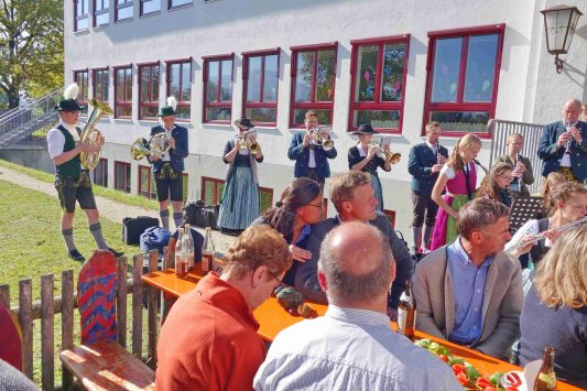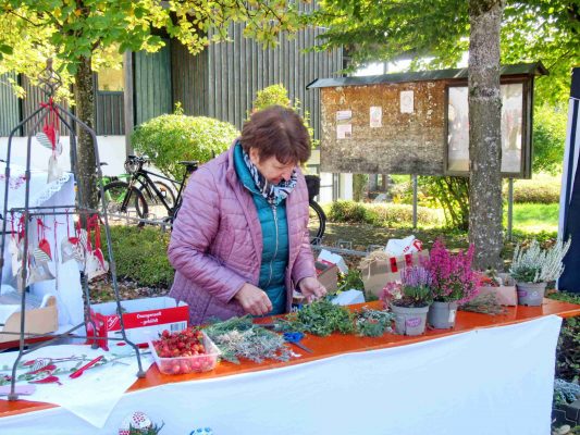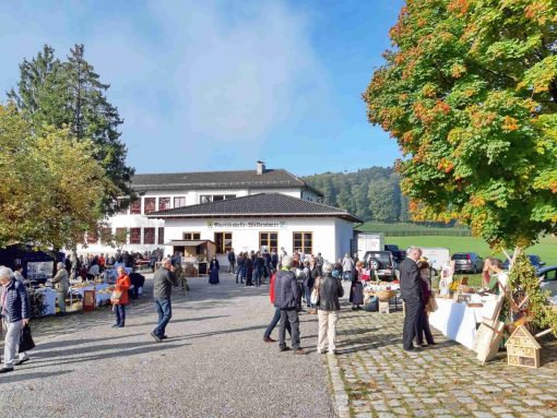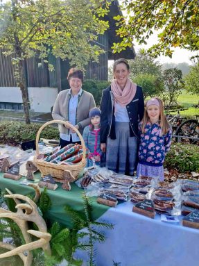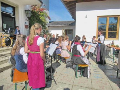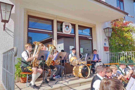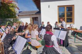 Ein Herbsttag, wie er nicht schöner hätte sein können, war dem Musikförderverein von Wildenwart beschieden als er auf dem Gelände zwischen Pfarrkirche, Pfarrheim, Schule und Musikantenheim einen Herbstmarkt zugunsten der Wildenwarter Blasmusik organisierte. Die Vielzahl an Ausstellern gaben Einblicke unter anderem in die Arbeit eines Drechslers, von Hobbymalerinnen, von Direktvermarktern, von Edelweiß-Schnitzern, Schmuck-Anbietern oder von Loiferl-Strickern – das Angebot für Betrachter und Kaufinteressierte war vielfältig. Dazu gab es noch weiteres Kulinarisches, Kulturelles und Musikalisches. Für die Bewirtung sorgten unter anderem Metzger Richard Grosse aus Pinswang sowie das fleißige Küchenteam im Pfarrheim. „Über 700 Kirtanudeln konnte ich dank fleißiger Lieferanten von Mehl und Hefe herstellen – und alle gingen sie weg wie warme Semmeln“, so Maria Bohrer als „Einsatzleiterin“. Ebenfalls Begeisterung löste aus, dass den ganzen Tag über die Wildenwarter Blaskapelle mit Dirigent Sebastian Graf und der zahlreiche Nachwuchs unter der Leitung von Eva-Maria Gruber zur Unterhaltung aufspielte. Stellvertretend für die durchwegs bei allen Ausstellern zu hörende Zufriedenheit sagte Katharina Schmid vom Freundeskreis für das Priesterseminar im ukrainischen Ternopil: „Gebasteltes und Eingemachtes fanden große Zustimmung und so bereiten wir uns jetzt auf den Weihnachtsmarkt am 27. und 28. November in Achenmühle vor, dann sind wir wieder dabei wenn das Motto lautet HELFT UNS HELFEN“. Für Jakob Steiner, dem Vorsitzenden des Musikfördervereins von Wildenwart, hat sich der Aufwand für die eintägige Veranstaltung gelohnt, sein Resümee lautete: „Das Zusammenhelfen von Aktiven und Förderern, der starke Besuch auch von auswärts sowie das gute Wetter haben dafür gesorgt, dass sich die Leute endlich wieder einmal gemütlich treffen konnten und zugleich geschah was Gutes für die Blasmusik, mit den heutigen Erlösen wollen wir besonders den blasmusikalischen Nachwuchs fördern“.