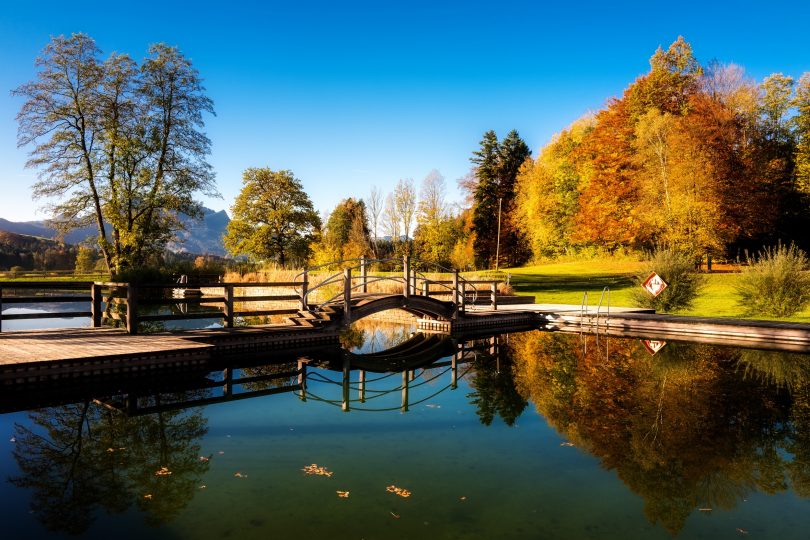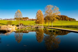 Eine wahre Farbenpracht überzieht derzeit den Samerberg, in dessen Naturbad spiegeln sich bei exzellenten Lichtverhältnissen die Farben von Landschaft, Weidetieren und Wasser ganz besonders ausdrucksstark – die Bilder vom Samerberger Naturbad und von der Samerberger Filze sind gleichsam einem Gedicht.
