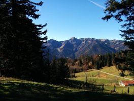 Nach einer kurzen Pause am idyllischen Bergsee geht es weiter. Wir kommen zu einer Wegkreuzung mit einem Wegweiser der nach rechts in Richtung Hinterwössen zeigt. Geradeaus führt der Weg zur Taubenseehütte. Natürlich machen wir den Abstecher zur Taubenseehütte, denn eine Einkehr in der wunderschön gelegenen Hütte ist ein absolutes Muss. Nach einer Brotzeit und dem Genuss der herrlichen Aussicht von der Terrasse der traumhaft gelegenen Hütte geht es zurück zur Wegkreuzung. Wir folgen dem steinigen Pfad hinunter zur Chiemhauseralm, die wunderschön liegt und Aussichten auf den Geigelstein, Breitenstein und Karkopf bietet. Die Alm ist nur im Sommer bewirtschaftet, also schauen wir uns nur kurz um, denn sie eröffnet tolle Blicke hinüber zum Geigelstein. Es geht gemütlich weiter über Moorwiesen zur Häusleralm. Kurz nach passieren der Häusleralm zweigt rechts ein Weg ab zur Baumgartenalm. Ein Abstecher dorthin ist unbedingt empfehlenswert, denn von hier hat man eine phantastische Aussicht in die Berchtesgadener Alpen. Nach diesem Abstecher wandern wir zurück auf den Weg hinunter über die Wegmannalm zum Ausgangspunkt am Wanderparkplatz in Hinterwössen. Insgesamt war es keine besonders schwierige, aber lange Bergwanderung durch insgesamt gutmütiges Gelände, über breite Forst- und Wiesenwege und kleine, teils steinige Pfade. Am holprigen und steilen Luftbodensteig ist Trittsicherheit erforderich.