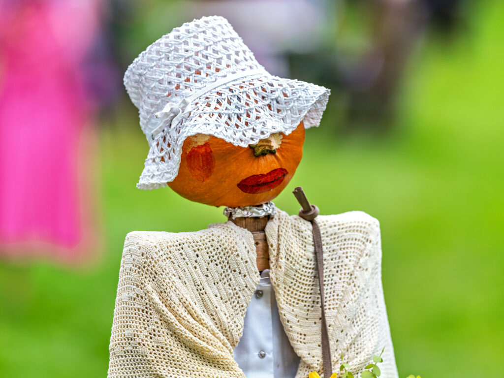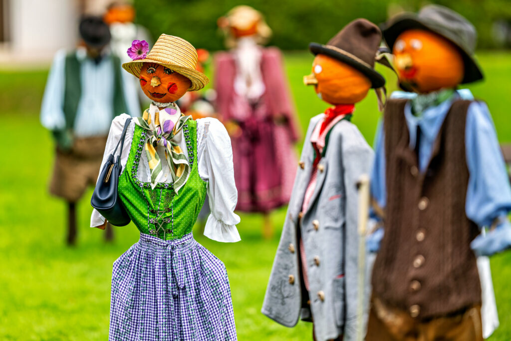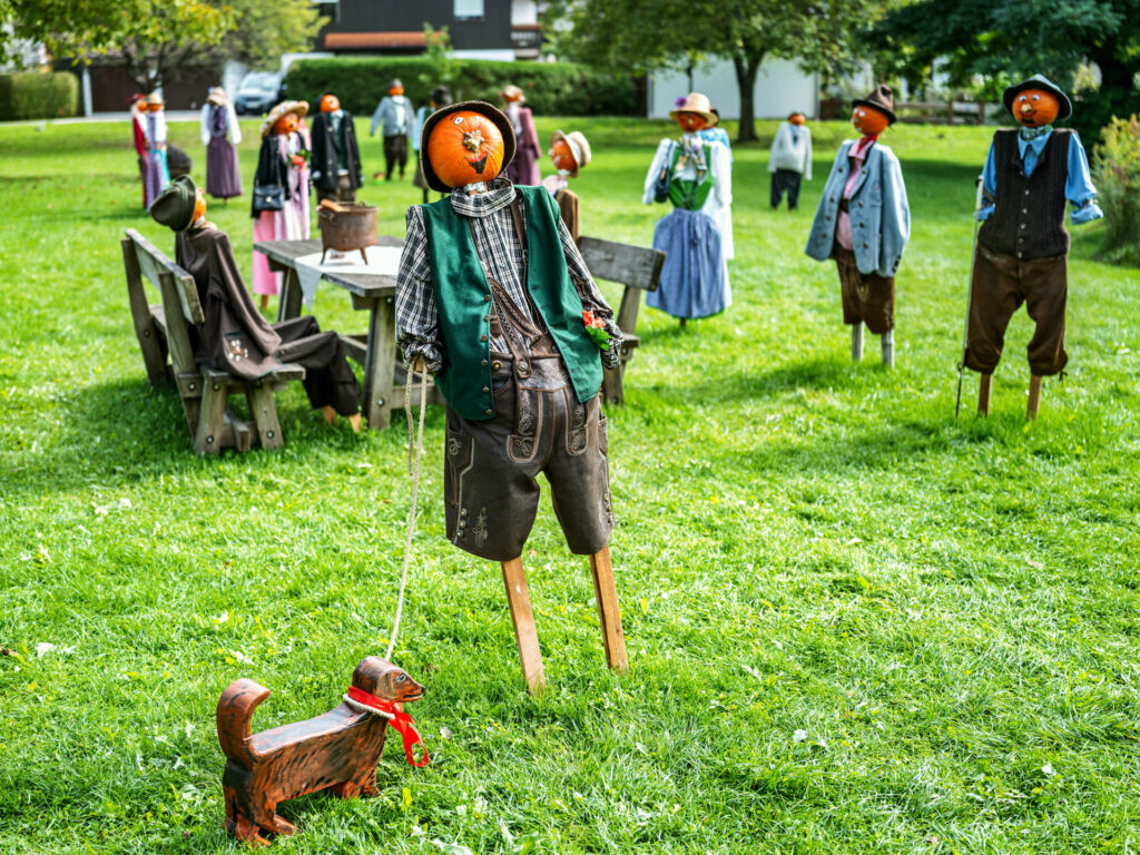 Seit vielen Jahren verwandelt der Obst- und Gartenbauverein unter der Leitung von Maria Liegl den Platz in ein herbstliches Freilufttheater. Dutzende lebensgroße Figuren mit bemalten Kürbisköpfen und bunt gekleideten Körpern bevölkern den Anger.