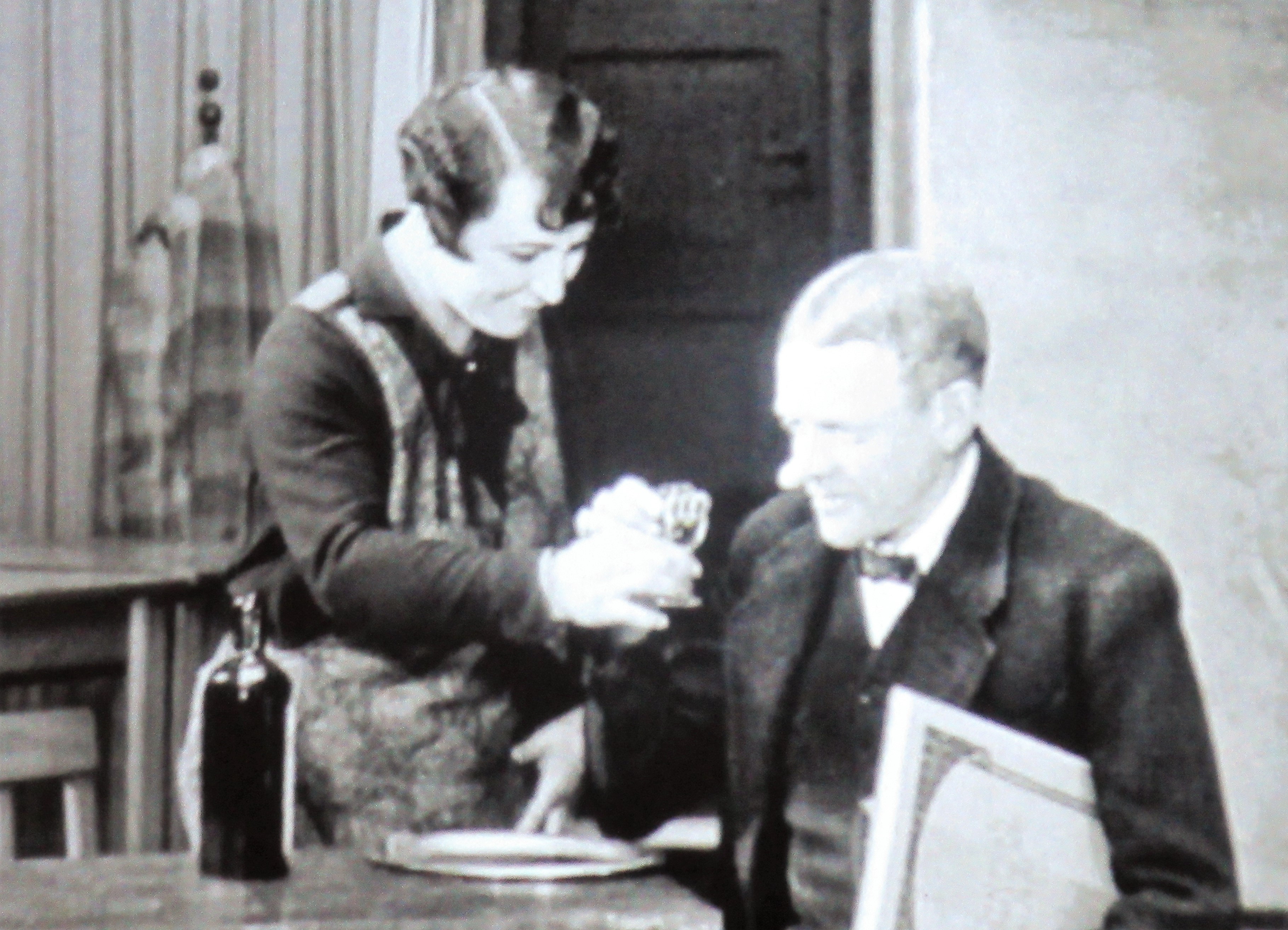 Die Meisteri trinkt mit dem Angestellten einen Schnaps