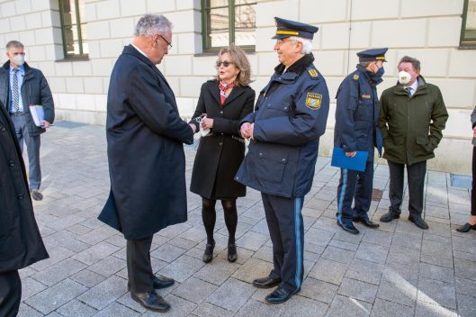 Nachfolger Michael Schwald aus Augsburg bezeichnete Herrmann als ideale Nachbesetzung. Er habe sich auf allen beruflichen Stationen hervorragend bewährt, zuletzt mehr als acht Jahre als Präsident des Polizeipräsidiums Schwaben Nord. “Michael Schwald bringt alle Voraussetzungen mit, um die ausgezeichnete Arbeit seines Vorgängers nahtlos fortzuführen”, so Herrmann. Er verfüge neben seiner ausgezeichneten Polizei-Expertise über umfassende Erfahrungen in verschiedenen Ressorts der Bayerischen Staatsverwaltung. Außerdem schätzt Herrmann Schwalds unaufgeregte und stets sachliche Art, selbst in stressigsten Situationen. Dazu komme der ausgesprochen empathische Umgang mit seinen Mitarbeiterinnen und Mitarbeitern. “Mit Schwald steht ein Top-Jurist mit herausragenden Führungsqualitäten und außergewöhnlichen sozialen Kompetenzen an der Spitze der Bayerischen Polizei”, fasste der Innenminister zusammen. “Die Bayerische Polizei wird auch künftig in den besten Händen sein!”