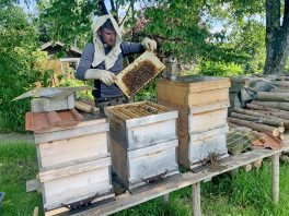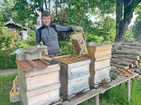 Fotos: Hötzelsperger – Florian Hötzelsperger und seine Bienenvölker, u.a. beim Füttern