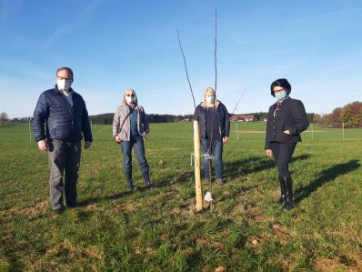 Beim Ortstermin in Elperting besichtigten Priens Bürgermeister Andreas Friedrich mit der aus einer Landwirtschaft und Obsterzeugung stammenden Gemeinderätin Rosi Hell und Umweltreferentin Angela Kind die Neupflanzung. „Wir bedanken uns im Namen der Gemeinde beim Obst- und Gartenbauverein, sowie bei all unseren Obstgartenbesitzern. Ich möchte auch herausstellen, dass derartige Aktionen beweisen, dass unsere Landwirte aktive Umweltschützer sind. Unsere regionale Landwirtschaft ist sehr wichtig für die Artenvielfalt. Landwirtschaft und Umwelt funktionieren nur Hand in Hand.“, betont Friedrich und freut sich besonders, dass auf seinem Gemeindegebiet neue Streuobstwiesen entstehen, zumal Riepertinger vorwiegend alte Obstsorten angepflanzt hat, wie z.B, den Apfel Holzollinger Rambour. „Auch wenn ich aus einem Betrieb mit Obstanbau stamme, kenne ich nicht alle Sorten“ gesteht Riepertinger. „Damit ich die Sorten über die Jahre nicht vergesse, habe ich gleich Sortenschilder beim 2. Vorstand des Obst- und Gartenbauvereins mitbestellt“, so die Bäuerin. Ernst Wörtz gravierte die Schilder in mühevoller Handarbeit und liefert die Metallschilder auf Bestellung gegen eine kleine Gebühr gleich mit.