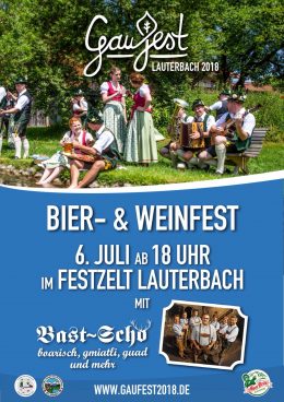 Richtig zünftig wird es heute, am Freitag, 6. Juli im Festzelt von Lauterbach. Ab 18 Uhr spielen die Mitglieder der Kapelle  “Bast scho” unter dem Motto “Boarisch, gmiatli, guad und mehr” auf. Veranstalter ist der Trachtenverein Lauterbach.