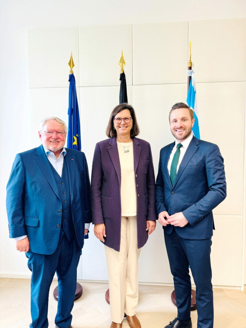 Landtagspräsidentin Ilse Aigner und der Rosenheimer Landtagsabgeordnete Daniel Artmann haben sich mit Anselm Bilgri, dem neuen Geschäftsführer der Ernst Freiberger-Stiftung, im Landtag getroffen.