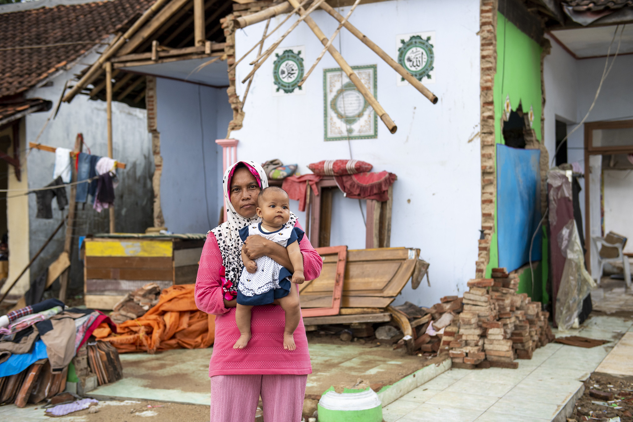 Java, Banten: Der Tsunami zerstörte ihr Haus in Balakan Village In der Nacht zum 23. Dezember 2018 wurde Indonesien erneut von einem schweren Tsunami getroffen. Die Flutwelle traf die Inseln Sumatra und Java völlig unerwartet. Lokale Teams der Caritas sind mit Unterstützung von Caritas international im Einsatz, um Hilfe zu leisten. Im September 2018 wurde bereits die Insel Sulawesi von einem Erdbeben und einem Tsunami getroffen. mehr Informationen: https://www.caritas-international.de/hilfeweltweit/asien/indonesien/nothilfe-und-wiederaufbau-nach-tsunami Foto: Bente Stachowske Copyright Caritas international, Abdruck honorarfrei, Belegexemplar erbeten, Tel: 0761/ 200-288