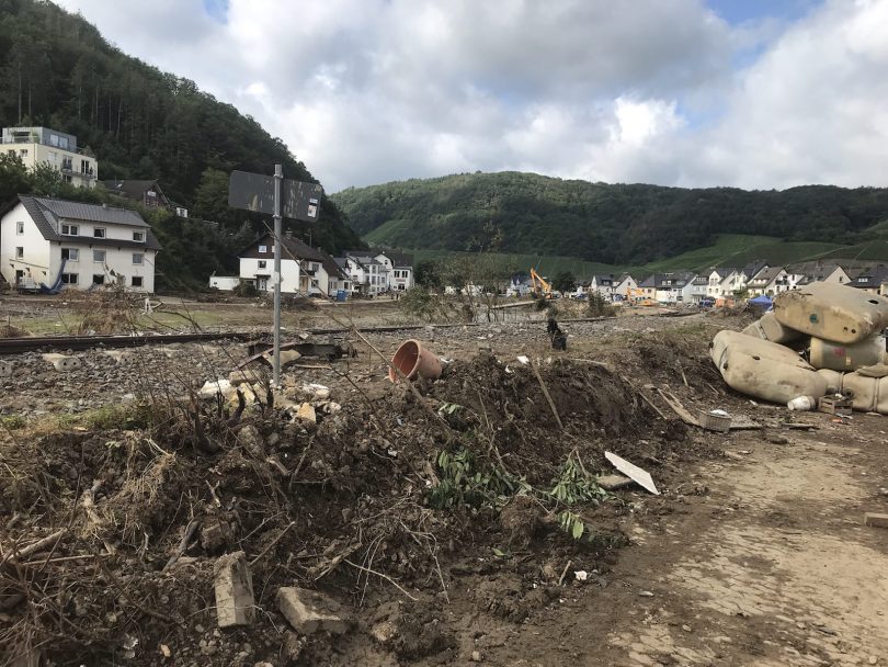 „Er herrscht teilweise absolute Verwüstung und kein Stein ist dort mehr auf dem anderen“, berichtet Kreisbrandrat Richard Schrank aus der Region um Dernau. Die Infrastruktur sei völlig zerstört, es gebe kein Trinkwasser, keinen Strom und keine Kanalisation mehr. Durch die flächendeckende Störung des Mobilfunknetzes sei auch die Kommunikation deutlich erschwert. „Viele Menschen wohnen auch immer noch in den zerstörten Orten, weil sie Angst vor Plünderungen haben.“