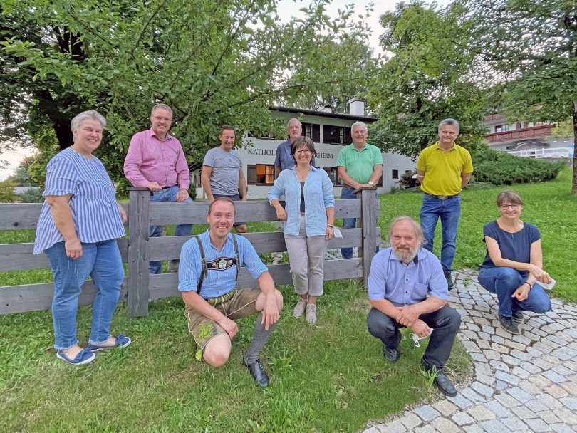 2022 ist es wieder soweit: Das große Aschauer Heilige Grab wird zur Fastenzeit im März 2022 erneut in der Katholischen Pfarrkirche „Darstellung des Herrn“ aufgebaut, ergänzt diesmal von einer leuchtenden Kunstinstallation am Kirchturm „Himmelsleiter“. Die Himmelsleiter hat eine Höhe von 28 Metern, mit zwölf Sprossen und sieben Engelsflügeln versehen, kommt diese erstmals in den Landkreis Rosenheim. Die Engelsflügel am Kunstobjekt versinnbildlichen, die in der biblischen Vision Jakobs als Boten zwischen Gott und den Menschen auf der Himmelsleiter auf und niedersteigen. Die Symbolfarben Farben ROT und BLAU der Leiter, wiederholten sich in den Abend- und Nachtstunden, wenn die Leiter beleuchtet ist. Als schwebendes Kunstobjekt wird die Himmelsleiter von Mitte März 2022 bis Mitte November 2022 an den Nordturm der Aschauer Pfarrkirche angebracht werden. Die Vorbereitungen für ein reichhaltiges Rahmenprogramm für das Hl. Grab und die Himmelsleiter mit Konzerten, Führungen, Gottesdiensten, stillen Zeiten, Musik für die Seele und weiteren kreativen Ideen sind bereits jetzt schon in vollem Gange. Für das Gemeinschaftsprojekt kam so erneut ein Arbeitskreis (siehe Foto) mit Mitglieder der Katholischen Pfarrgemeinde Aschau i.Chiemgau sowie des Heimat- und- Geschichtsvereins Aschau zusammen. Dabei wurden auch verschiedene Varianten – je nach Corona-Lage – überlegt, um die Inhalte von Heiligem Grab und Himmelsleiter auf ganz unterschiedliche Weise Einheimischen und Gästen nahezubringen.