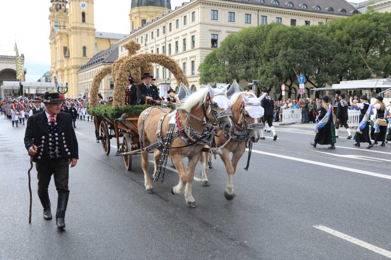 Der Trachtenverein aus Hinterskirchen, Gemeinde Neufraunhofen und der Bayerische Trachtenvernand e.V. Sitz im Trachtenkulturzentrum in Holzhausen, Marktgemeinde Geisenhausen wirkten aus unserer Region  wieder mit beim  traditionellen Trachten- und Schützenzug bei trockenem und sonnigen Herbstbilderbuchwetter am ersten Wiesnsonntag auf dem Münchner Oktoberfest. Erstmals im Jahre 1835 zu Ehren der Silberhochzeit von König Ludwig I und Therese von Bayern abgehalten wurde, hat sich dieser seit 1948 regelmäßig stattfindende Trachtenfestzug zu einer herausragenden Oktoberfestveranstaltung entwickelt. Es zogen auch wieder über 9.000 Mitwirkende von der Maximilianstraße aus rund sieben Kilometer durch die Münchner Innenstadt zur Oktoberfestwiese hinaus und präsentieren die Vielfalt von Trachten, Brauchtum und Volkstanz. Viele deutsche Bundesländer waren wieder mit ihren Trachten- und Musikgruppen vertreten, sowie Gäste aus Frankreich, Italien, Norwegen, Österreich, Polen und der Schweiz. Aus unserer Region wirkten heuer auch der Trachtenverein aus Hinterskirchen und der Bayerische Trachtenverband e.V im Trachtenkulturzentrum Holzhausen, Marktgemeinde Geisenhausen mit. In bunter Folge wechseln sich hierbei die festlich gekleideten Trachtler mit den Sport- und Gebirgsschützen, Musikkapellen, historischen Trachtengruppen, Spielmanns- und Fanfarenzügen und bunten Fahnenschwingern ab. Die Prachtgespanne der Münchner Brauereien, eine große Abordnung der Bayerischen Gebirgsschützen, sowie der Sportschützenblock, geschmückte Festkutschen und nicht zu vergessen eine Vielzahl geschmückte Festwägen mit Handwerks- und Brauchtumsdarstellungen rundeten das Bild dieses einzigartigen und weltberühmten Trachten- und Schützenzuges ab.