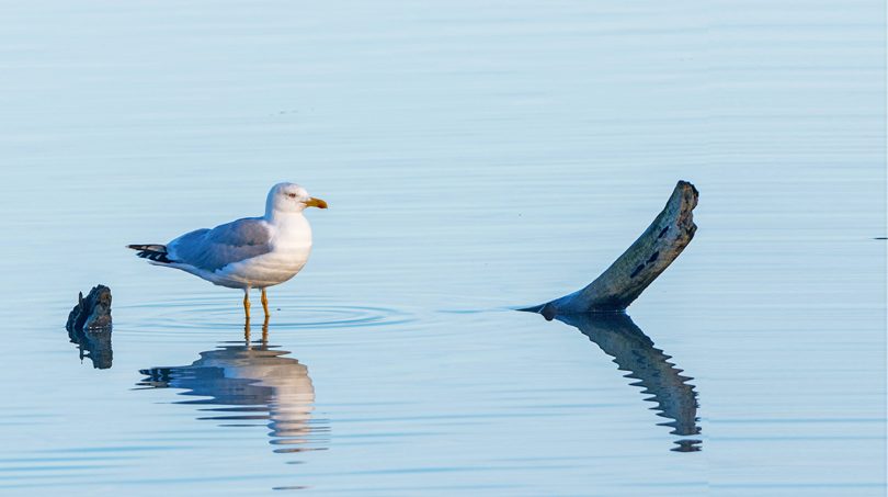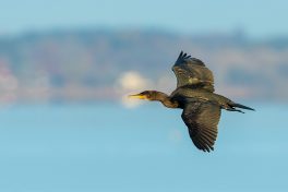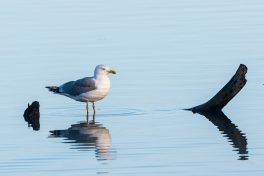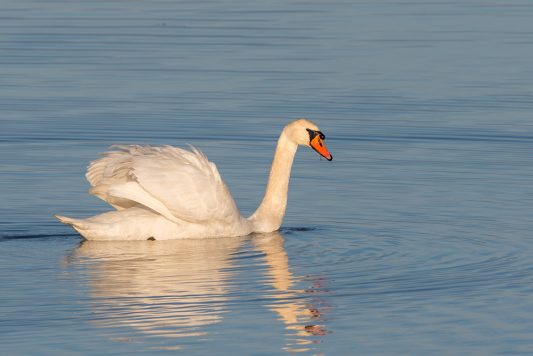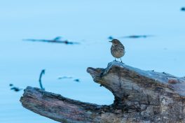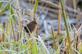 Ein kalter Morgen mit etwas Bodenfrost, die ersten Sonnenstrahlen treffen auf den See und ein Höckerschwan genoß das wärmende Licht. Im noch in frostigen Schatten gehüllten Ufer hüpften ein Bergpieper und ein Zaunkönig vor dem Turm herum. Eine Mittelmeermöwe patroullierte am Ufer entlang und ließ sich dann auf einem halb versunkenem Stamm nieder. Mittlerweile erreichten die Sonnenstrahlen auch ein aufgeplustertes Rotkelchen im Gebüsch. Insgesamt war es sehr ruhig und nur wenige Vögel zeigten sich vor dem Turm. Außer einem Kormoran flogen auch noch große Schwärme von Graugänsen vorbei und zu guter Letzt gab sich noch eine Kornweihe die Ehre.