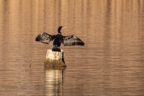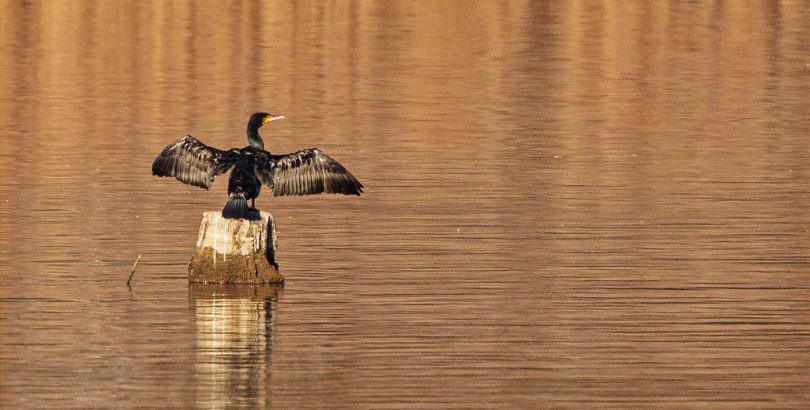 Ein Kormoran nutze die schwachen Strahlen der Wintersonne zur Gefiedertrocknung nach dem Tauchgang.