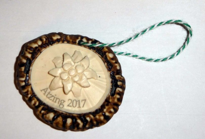 Viele Arbeitsschritte sind notwendig, um die zahlreichen Festzeichen fertigzustellen. Dem Spritzgießen folgen das wochenlange Einfärben und Beizen im Tauchverfahren, das mehrmalige Trocknen und Umdrehen, das Scheuern, das Schleifen, das Waschen und noch vieles mehr. Das Ergebnis aus dem Zusammenwirken von modernster Technik und liebevoller Handarbeit kann sich jetzt nach einem guten Jahr der Planungen sehen lassen: ein Gaufestzeichen der besonderen Art – aus Atzing und für Atzing. Bei den verschiedenen Arbeitsschritten waren neben der Familie Fischer und den Beschäftigten der Fischer-Formtechnik GmbH immer wieder Männer des Atzinger Trachtenvereins im Einsatz, zum Beispiel beim Sauberschleifen der Rückseite oder beim Zusammenklopfen von Rosette und Innenteil. Ein weiterer Vorgang war die Laser-Beschriftung, hier half die Firma Laserveredelung Steinberger aus Rimsting. Die Frauen des Vereins sorgten dann an geselligen Abenden im Vereinshaus für das Einfädeln der Kordel mit Sicherheitsnadel, so dass das Festzeichen letztendlich fertig war und nunmehr gut sichtbar an Joppe oder Bluse am Gaufestsonntag angebracht werden kann. Insgesamt werden am Sonntag, 30. Juli in Atzing rund 4.000 Trachtlerinnen, Trachtler und Blasmusikanten erwartet. Für nochmals so viele Zuschauer haben sich die Atzinger dank der Hilfe der Familie Fischer mit Festzeichen eingedeckt. Erstmals vorgestellt wurde das Festzeichen mit Edelweiß-Motiv bei der Festversammlung am Tag nach dem Aufstellen eines Festbaumes, dabei gab es große Anerkennung für die schön umgesetzte Idee des Hirschhornknopfes, der nach dem Gaufest mittels zwei dünner Löcher angenäht und weiter verwendet werden kann – ganz im Sinne von Gerhard Fischer, den von Anfang an die Idee motivierte, ein Festzeichen mit nachhaltigem Nutzen zu erstellen. Für den Festverein dürfte es somit leicht sein, die Gaufest-Besucher um den Kauf eines Festzeichens zu bitten, vielmehr dürfte es sich ergeben, dass Trachtler, Einheimische und Gäste ganz gezielt nach dem Hirschhornknopf aus Atzing nachfragen.