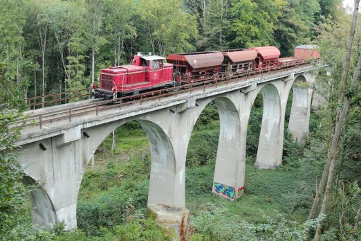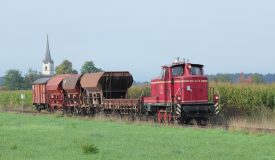 Einige alteingessene Anwohner der Lokalbahn Bad Endorf – Obing (‘L.E.O.’) werden sich verwundert die Augen gerieben haben, denn am 15. September 2018 kam nach langer Zeit wieder ein Güterzug auf die Strecke. ‘Eine Diesellok mit 7 Waggons versorgt die Landhändler in Halfing und Obing’ – das war das Motto einer Fotogüterzugveranstaltung auf der ‘L.E.O.’, die von einem Berliner Reiseveranstalter durchgeführt wurde. Es sollte ein Betriebstag im Stil der 70er Jahre auf einer bayerischen Nebenbahn dargestellt werden. Monatelange Vorbereitungen waren hierfür notwendig, eine Diesellok sowie 6 Güterwagen wurden extra angemietet und in Rosenheim abgeholt, ein weiterer Güterwagen wurde von der Chiemgauer Lokalbahn beigestellt. Die Fotografen fuhren stilecht im historischen Triebwagen mit. Viele zufriedene Gesichter und das positive Feedback des Reiseveranstalters zeigten, dass die Chiemgauer Lokalbahn auch für anspruchsvolle Touristen eine Attraktion bieten kann. Bis heute können übrigens am Bahnhof in Obing Güter auf die Bahn verladen werden, da noch eine Laderampe und eine Ladestraße vorhanden sind.