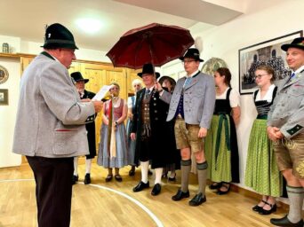 Ein weiteres großes Fest wird am 12. Mai 2024 auf dem historischen Marktplatz von Neubeuern gefeiert: Der Volkstrachtenerhaltungsverein „Edelweiß“ Neubeuern lädt zum 21. Treffen der Historischen Trachten von Altbayern ein. Einer alten Tradition folgend, hatten sich die Vorstandschaft und der Vereinsausschuss zum Schirmherrnbitten im Trachtenheim Neubeuern eingefunden.