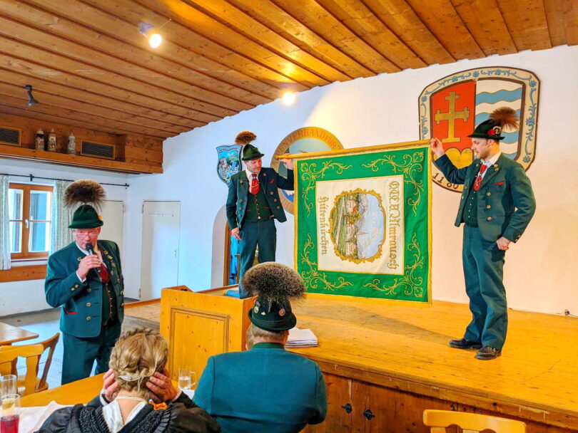 In der letzten Herbstversammlung kündigte Vorstand Christoph Kaufmann vom Trachtenverein „Almarausch“ Hittenkirchen an, dass die 1971 von den Schwestern der Taubstummenanstalt Hohenwart in gekonnter Handarbeit hergestellte Vereinsfahne einer gründlichen und aufwändigen Erneuerung bedarf. Die Arbeiten hierzu konnten vor Kurzem abgeschlossen werden und die Fahne konnte beim Jahrtag mit Versammlung am ersten Maisonntag erstmals verwendet und präsentiert werden.