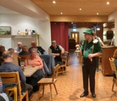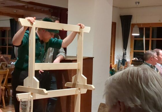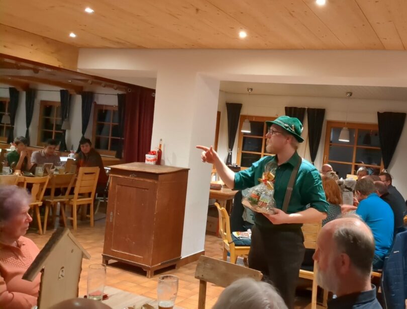 Auch in diesem Jahr verstand es Versteigerer Klaus Gelder, auf kurzweilige und unterhaltsame Weise zahlreiche Waren – von kulinarischen Köstlichkeiten bis hin zu handgefertigten Holz-Schragen – an die anwesenden Frauen und Männer zu bringen. Der Erlös der Versteigerung wird unter den Ortsvereinen aufgeteilt und kommt deren Vereinsarbeit zugute.